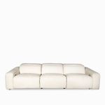 Sofá 3 puestos reclinable con estructura en madera, relleno de espuma y tapizado en poliéster color beige, especial para dar calidez a tu sala. Es una solución cómoda y versátil para las salas pequeñas, se puede aprovechar como cama en uno de sus lados y su diseño es moderno y se adapta cualquier tipo de decoración.