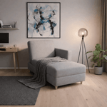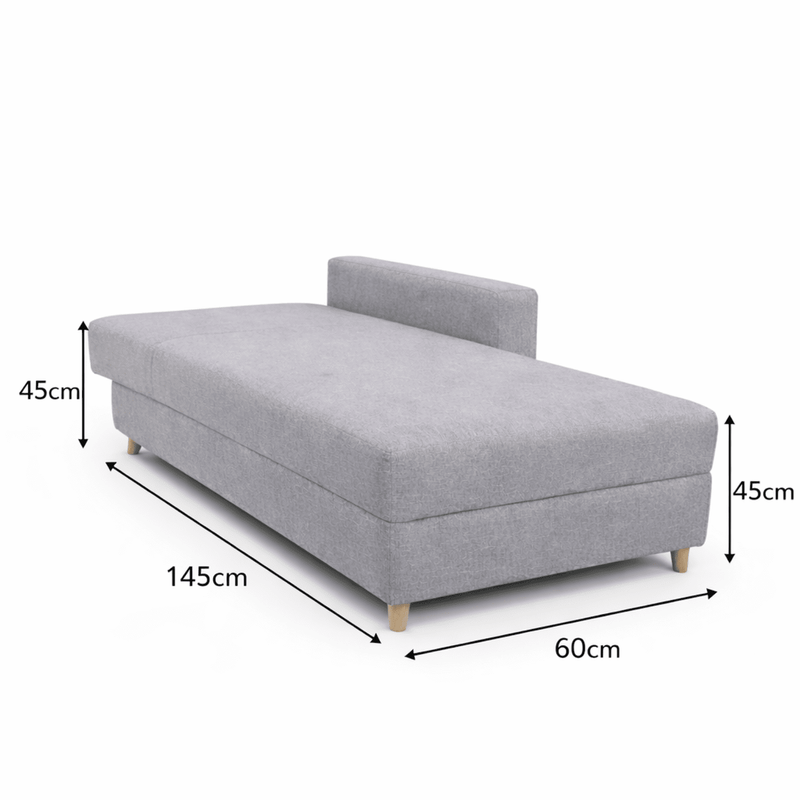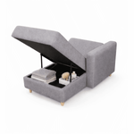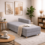 Su diseño tipo baúl permite guardar fácilmente cobijas o almohadas, mientras su acabado en color gris aporta un estilo sobrio y elegante. Se transforma en cama en pocos pasos, permite personalizar el color de la tela y además el brazo puede instalarse a la derecha o a la izquierda según la necesidad del cliente. Una solución práctica, cómoda y pensada para adaptarse a tu hogar.