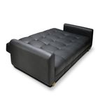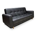 Sofá cama con diseño funcional. Ideal para optimizar tus espacios y conseguir el máximo confort, tapizado en tela tipo piel de durazno suave al tacto. Con brazos independientes tipo cojín siliconados y patas en madera.