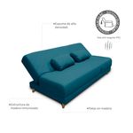 Sofá cama con diseño funcional de 5 posiciones. Ideal para optimizar tus espacios. Tapizado en anti rasguño PVC (No se pela, decolora o resquebraja). Máximo confort, patas en madera y antideslizante especial para evitar daños en el piso. Brazos tipo cojín acompañado de cojines decorativos.