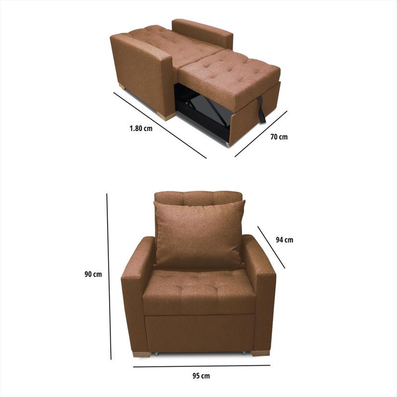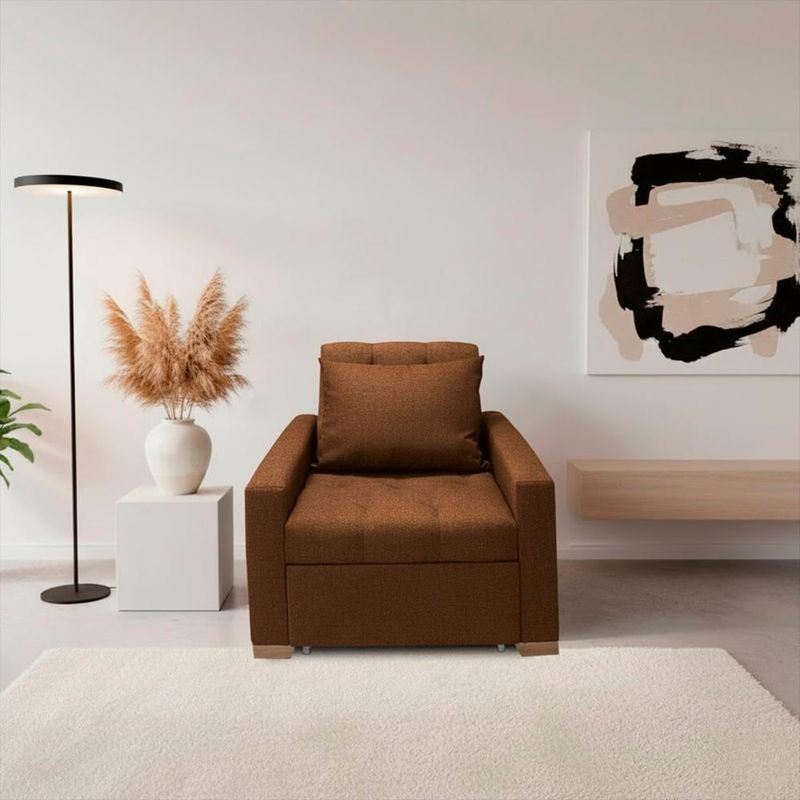 Sofá Cama Unipersonal Sabathy Tela Lino Camel