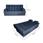 Sofá cama con diseño funcional 5 posiciones y 3 cuerpos. Ideal para optimizar tus espacios con máximo confort. Tapizado en tela lino de excelente durabilidad, con descansa brazos ajustables y patas de madera. Medida modo cama: 120 cm x 185 cm.