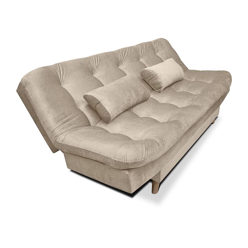 Sofá cama de 3 cuerpos con 3 posiciones: modo cama, reclinado o TV y modo sofá. Ideal para optimizar tus espacios. Tapizado en tela tipo piel de durazno, con brazos tipo cojín, máximo confort. Patas en madera con antideslizante, especial para evitar daños en el piso. Medida modo cama: 120 cm x 185 cm.
