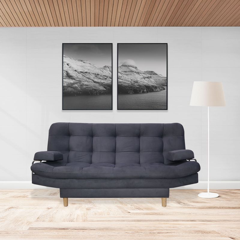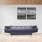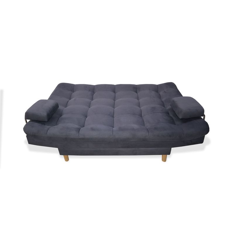 Sofá cama firme de gran confort, excelente soporte, 3 posiciones, tapizado en tela tipo Lino color Gris, patas en madera con antideslizante, estructura en madera Pino-inmunizada y espuma de alta densidad.