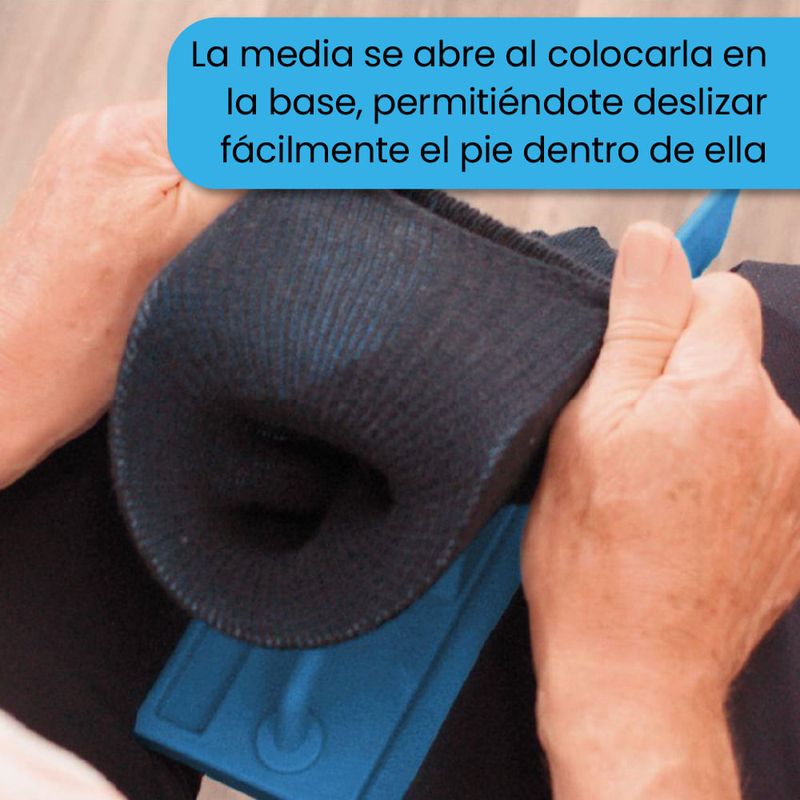• La media se abre al colocar en la base, haciendo que sea más fácil deslizar el pie dentro de ella.