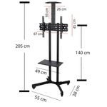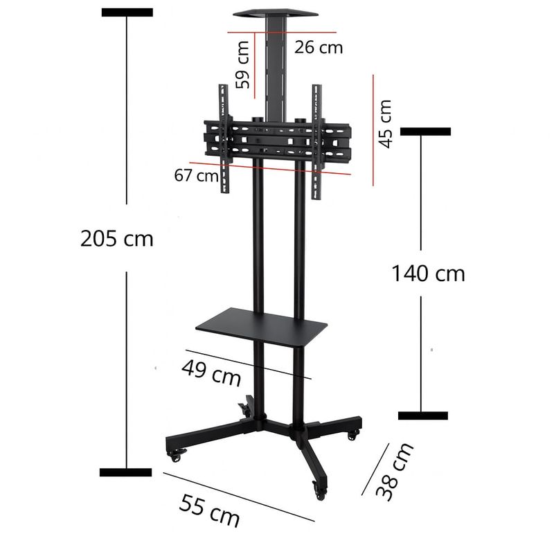 El soporte pedestal móvil es la solución ideal para montar su televisor de pantalla plana, ofreciendo portabilidad, estabilidad y versatilidad. Diseñado para televisores desde 32 hasta 70 pulgadas, este soporte es perfecto para salas de conferencias, aulas, exposiciones, hospitales o cualquier entorno que requiera flexibilidad en la ubicación de la pantalla. Cuenta con un robusto sistema de ruedas con freno para un fácil desplazamiento y fijación segura. Incluye bandejas ajustables para colocar equipos de audio/video, laptops o cámaras. Su construcción de acero de alta calidad garantiza una capacidad de carga excepcional y una durabilidad a largo plazo.