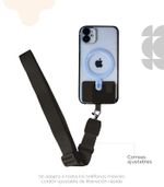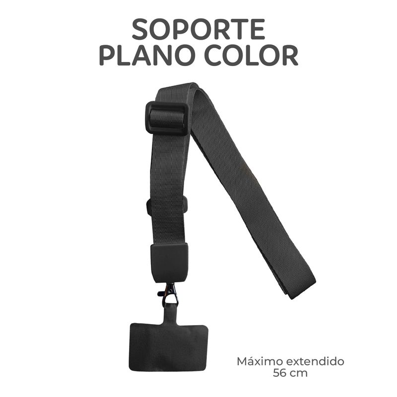 El diseño plano del soporte es cómodo de llevar y se ajusta fácilmente a la longitud deseada, asegurando que tus dispositivos estén siempre al alcance y de forma segura. Su cierre garantiza que tus pertenencias se mantengan seguras en todo momento.