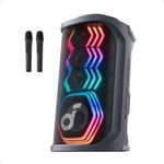 ¡Prepárate para llevar tus fiestas y reuniones al siguiente nivel! Este no es un altavoz común; es una central de entretenimiento 5 en 1. Imagina tener 200W de sonido estruendoso, lo suficiente para llenar una cancha de baloncesto, acompañado por un show de luces que baila al ritmo de la música. Lo mejor de todo es que viene con dos micrófonos inalámbricos profesionales y la innovadora IA de soundcore, que convierte cualquier canción de Spotify o YouTube en una pista de karaoke con solo un clic. Además, es robusto, resistente a salpicaduras (PX4), y tiene hasta 12 horas de batería. Simplemente el equipo más potente, inteligente y versátil que encontrarás para armar el ambiente.