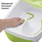 Incluye una cubierta anti-salpicaduras que mantiene todo bajo control y un control de encendido con el pie, totalmente impermeable, para que no tengas que agacharte ni usar las manos. Solo pon los pies, presiona suavemente y deja que el masaje fluya. Ideal para quienes pasan mucho tiempo de pie o simplemente quieren un momento de bienestar diario en casa