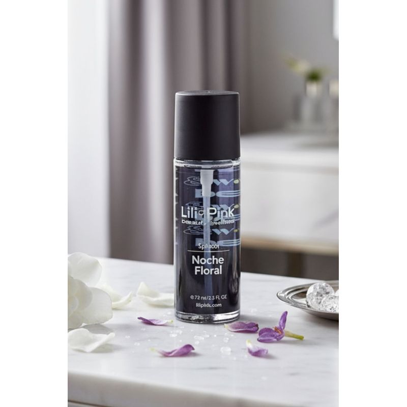 Noche Floral equilibra brillo frutal con profundidad floral–té para una presencia sobria y refinada. La pirámide olfativa guía su evolución en piel: