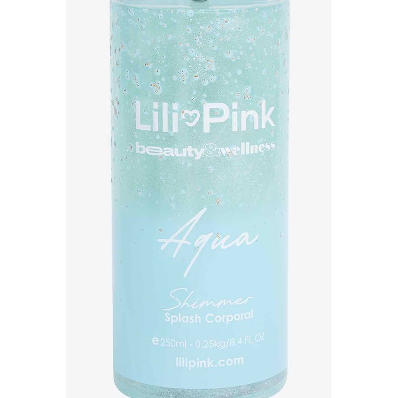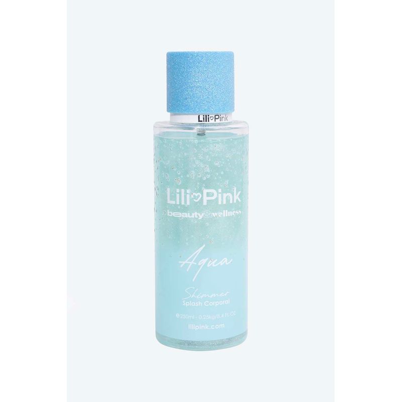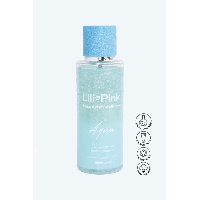 Aqua con shimmer es un splash corporal pensado para quienes aman la sensación de piel recién salida de la ducha. Su composición se apoya en la