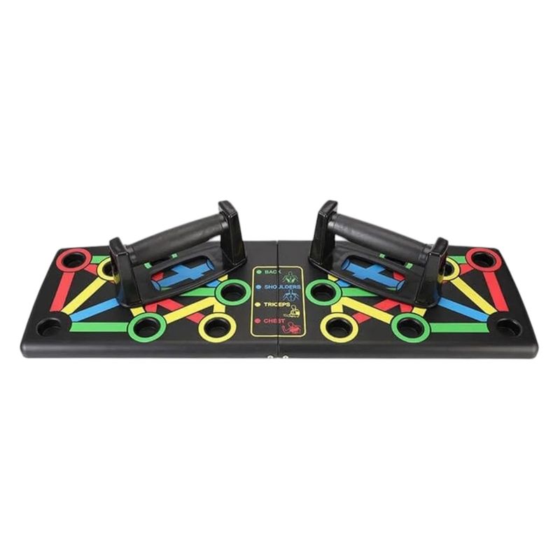 Transforma tu rutina de entrenamiento desde casa con esta tabla de flexiones multifuncional. Su diseño con colores guía permite trabajar grupos musculares específicos como pecho, espalda, hombros y tríceps, simplemente ajustando la posición de las manijas. Ideal para principiantes o avanzados, esta herramienta compacta y portátil es perfecta para mejorar fuerza, tonificar y definir tu cuerpo sin necesidad de ir al gimnasio. ¡Entrena de forma segura, efectiva y donde quieras!