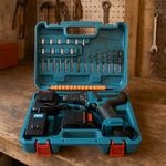 Este taladro atornillador inalámbrico multifunción es la herramienta ideal para trabajos de bricolaje, reparaciones domésticas y proyectos profesionales. Su diseño ergonómico, liviano y sin cables ofrece máxima comodidad y libertad de movimiento. Incluye un completo set de brocas, puntas y adaptadores para cubrir todas tus necesidades de perforación y atornillado.