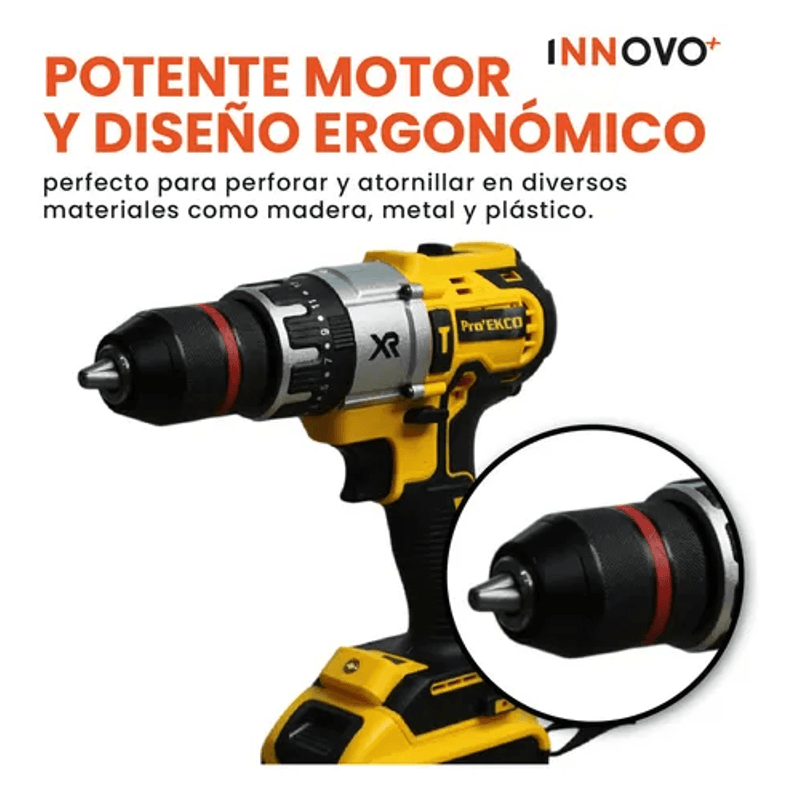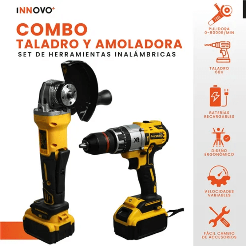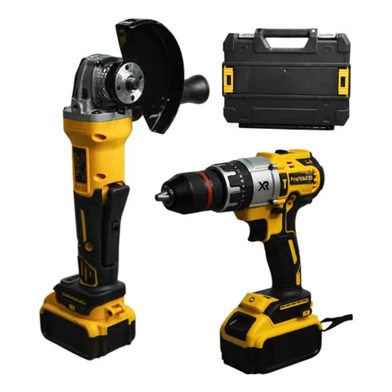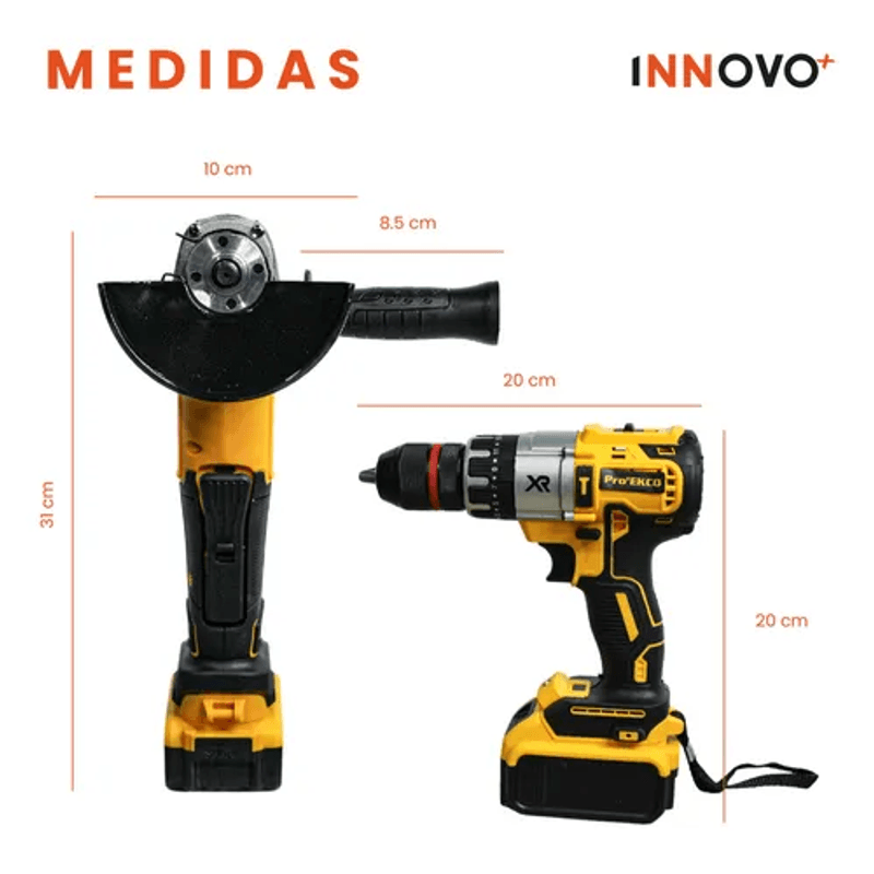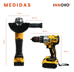 Ambas herramientas cuentan con doble batería de alta potencia, lo que te garantiza largas horas de trabajo sin interrupciones. Además, vienen en un estuche resistente para mantener todo organizado y seguro mientras lo transportas.