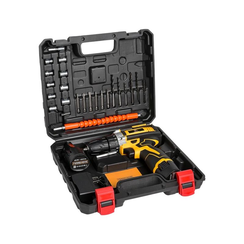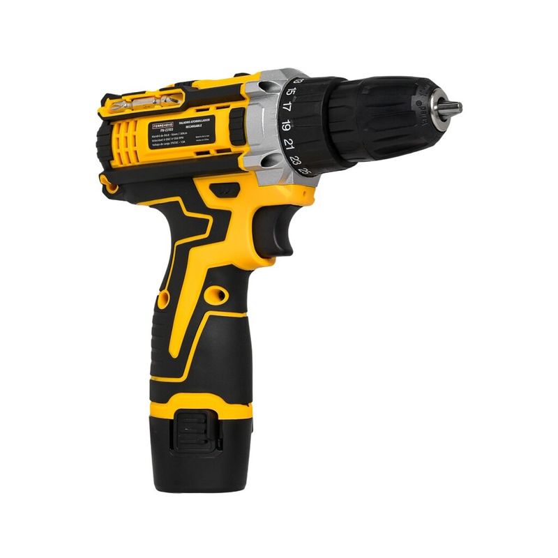 Potencia y practicidad en un solo equipo con el Taladro Destornillador Recargable 12V Ferrenovo. Ideal para trabajos en acero, madera y como atornillador. Su diseño compacto con empuñadura ergonómica brinda comodidad y control. Cuenta con mandril de 3/8”, torquímetro ajustable de 18 niveles y doble velocidad: baja 0-350 RPM y alta hasta 1350 RPM. Incorpora batería de litio de larga duración*, rotación reversible y bajo nivel de ruido, perfecto para proyectos domésticos en interiores.