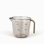 En plástico resistente con asa cómoda. Las medidas se indican en mililitros, onzas y tazas, hasta 600 ml. Con medidas en color negro de alto contraste y fácil visualización en color neutro. Hecho en poliestireno grueso resistente a la rotura, transparente y libre de BPA. Con asa para fácil agarre y limpieza. Perfecto para líquidos, sólidos, ingredientes secos y alimentos para perros, entre otros.