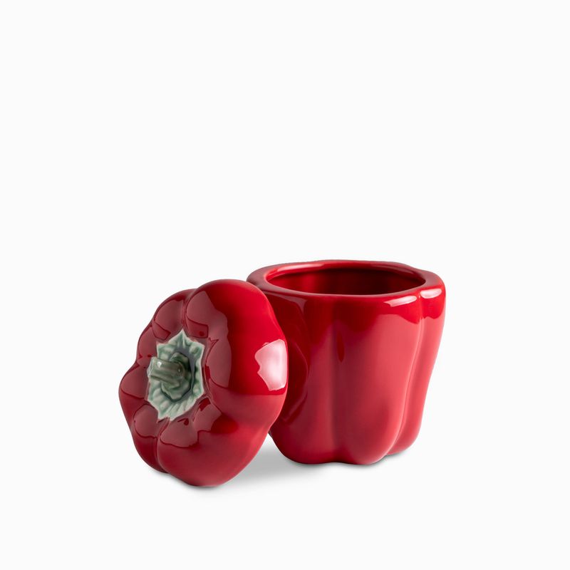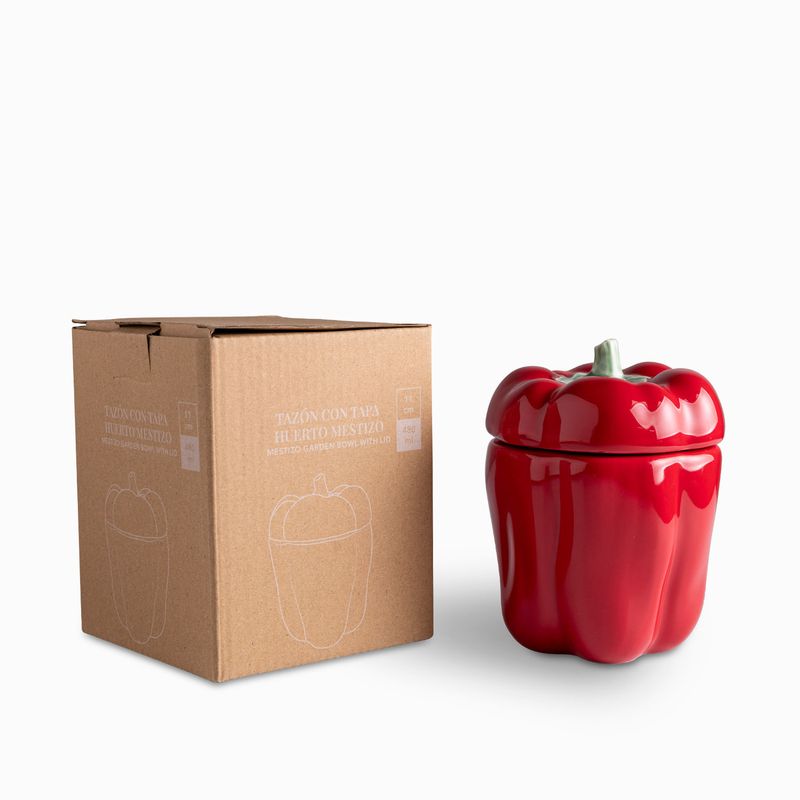 El toque divertido y funcional para tu cocina con el tazón con tapa Huerto Mestizo, una pieza que celebra la frescura de los ingredientes. Su diseño escultural y realista en forma de pimentón lo convierte en un acento decorativo encantador, mientras que su tapa y la cerámica ofrecen la solución ideal para servir y conservar tus alimentos, capacidad para 480ml.