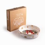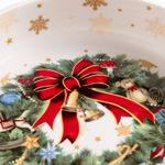 Plato hondo en porcelana de 24cm con capacidad 2000 ml, de la colección Noche Buena Snow. Ideal para servir cremas y sopas en cantidades generosas. Aporta un toque navideño a tu mesa.