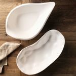 Tazón en porcelana blanca con forma irregular, con diseño llamativo aporta personalidad a la mesa, puede usarse para servir grandes cantidades, con capacidad para 1800ml.