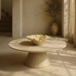 Tazón en resina y polvo de cal color beige, su diseño moderno y disruptivo le aporta personalidad al espacio, puede usarse como centro de mesa o matera.