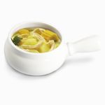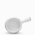 Tazón de porcelana con asa con capacidad para 500 ml. Un diseño clásico francés en el que se acostumbra servir sopas y tomar el último sorbo sin cuchara, sosteniendo el tazón por el asa. También se le pueden dar otros usos, como servir gratinados, estofados, cereal, pastas o ensaladas. Es una pieza que conserva muy bien la temperatura de los alimentos, es durable, no absorbe olores ni sabores, y soporta altas temperaturas como las del microondas y el lavavajillas sin romperse. País de origen: China. Importador: Distribuidora Matec S.A.S
