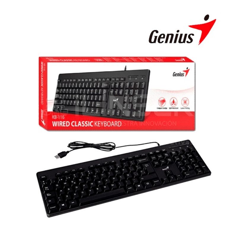Teclado genius Kb-116 en color negro y con cable, incluye todos los elementos que estás buscando para aumentar tu productividad con funciones mejoradas y actualizadas.