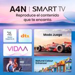 El televisor Hisense 32” HD Smart TV modelo 32A4N combina diseño compacto con funciones inteligentes para ofrecer entretenimiento de calidad en cualquier espacio. Con sistema operativo VIDAA, acceso a aplicaciones de streaming y una imagen nítida en resolución HD, es una opción práctica y moderna para disfrutar tus contenidos favoritos.