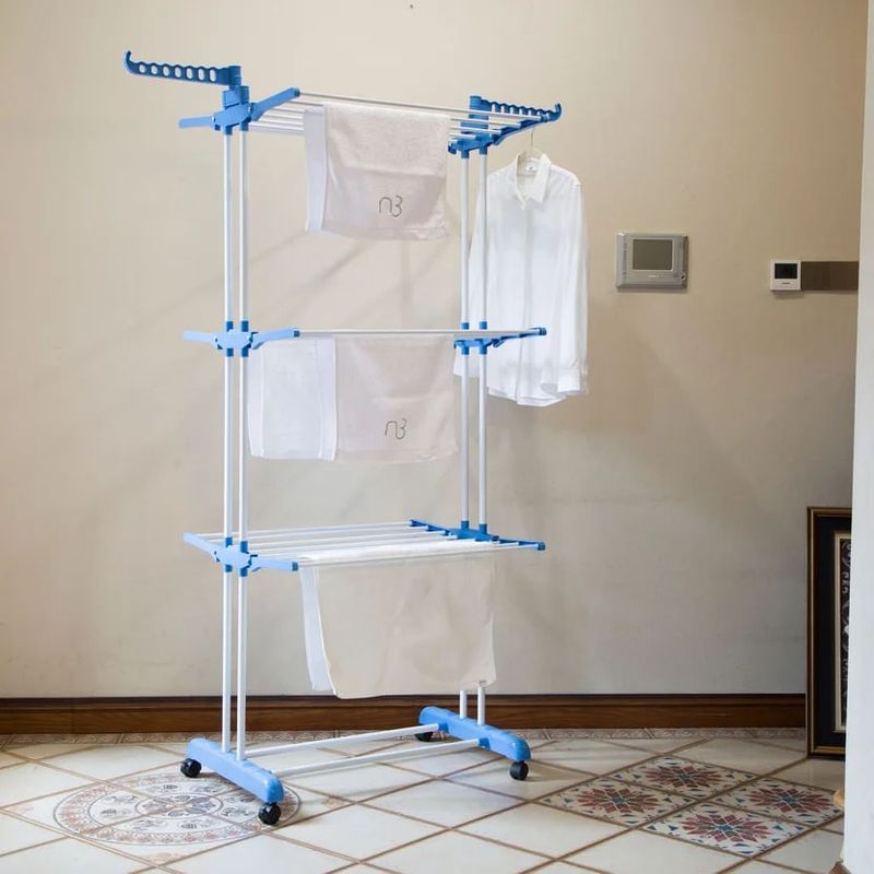 - 3 alturas con 6 alas plegables de manera independiente, ideal para sábanas, manteles, etc.