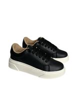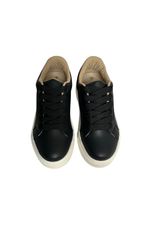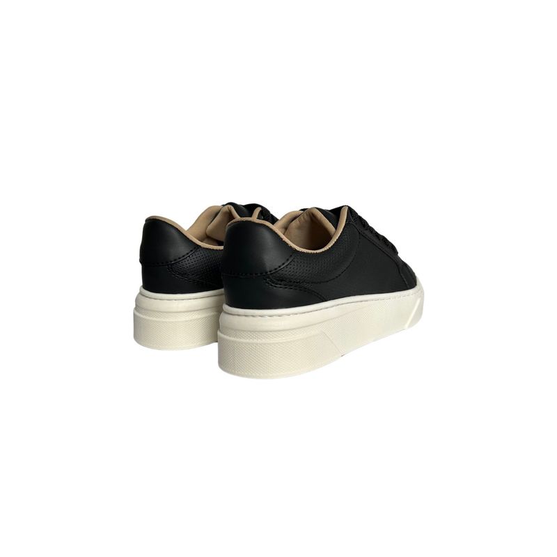 Material | Capellada en sintetico negro laterales con textura puntuada, cordones gruesos negro, puntera sintetico listo, suela en pvc liviano, suela cosida, forro en textil beige. |