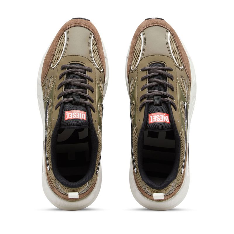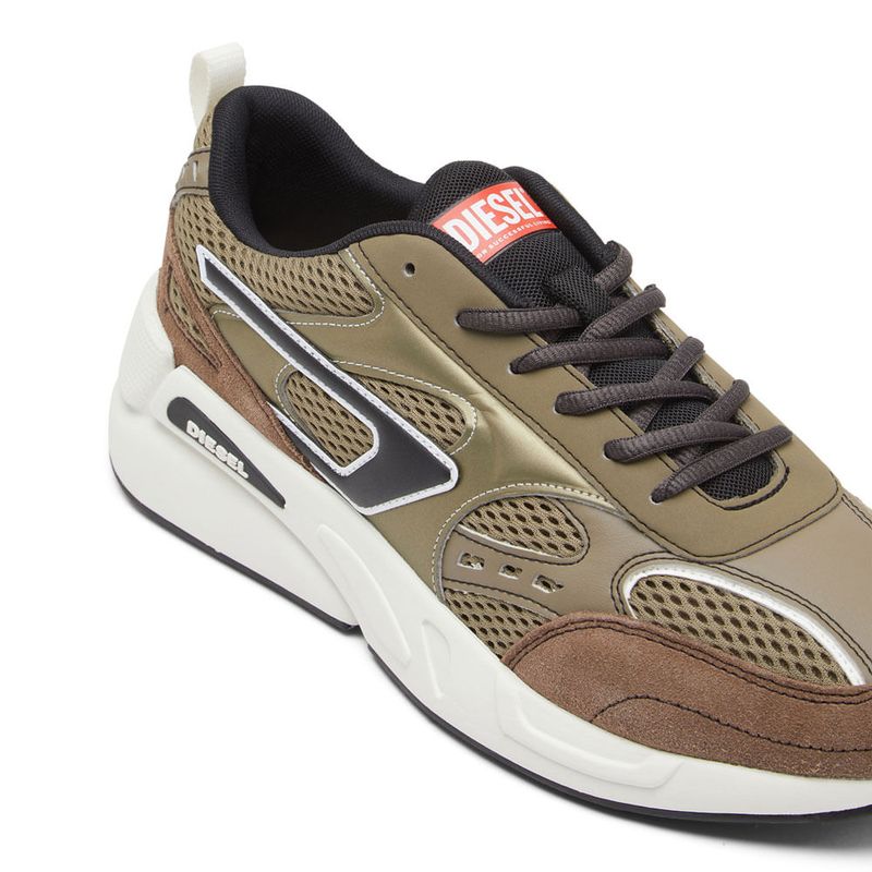 Diesel es una innovadora marca internacional de estilo de vida que produce una amplia colección de jeans, ropa y accesorios. Somos pioneros en denim y con el pasar de los años nos convertimos en una marca de ropa casual premium, siendo una verdadera alternativa en el mercado de lujo establecido. •Somos una marca que representa la pasión, la individualidad y la autoexpresión. El Mundo DIESEL te espera. Deportivas de malla con gamuza de estilo vintage y suaves capas superpuestas acolchadas. Presentan un parche D y una etiqueta Diesel For Successful Living prensada en caliente en la lengüeta. Se asientan sobre una suela deportiva acolchada. • 100%Poliéster País Origen: Vietnam