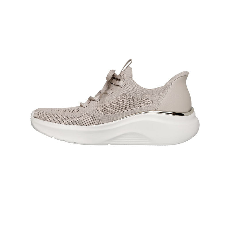 Las Skechers Slip-ins: BOBS Sport B Love - True Delight (ref. 117617-TPE) son unas zapatillas deportivas de estilo casual para mujer, diseñadas para ofrecer comodidad y estilo en el día a día. Este modelo presenta un diseño sin cordones, facilitando su colocación gracias a la tecnología exclusiva Skechers Hands Free Slip-ins®, que permite ponérselas sin usar las manos. La parte superior está confeccionada con un tejido técnico tipo knit, proporcionando transpirabilidad y flexibilidad. Incorporan una plantilla contorneada con tecnología Skechers Memory Foam™, que se adapta a la forma del pie, brindando una amortiguación personalizada y confort durante todo el día. Material del empeine: Sintético microperforado que mejora la transpirabilidad.