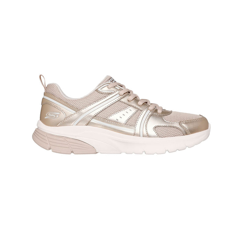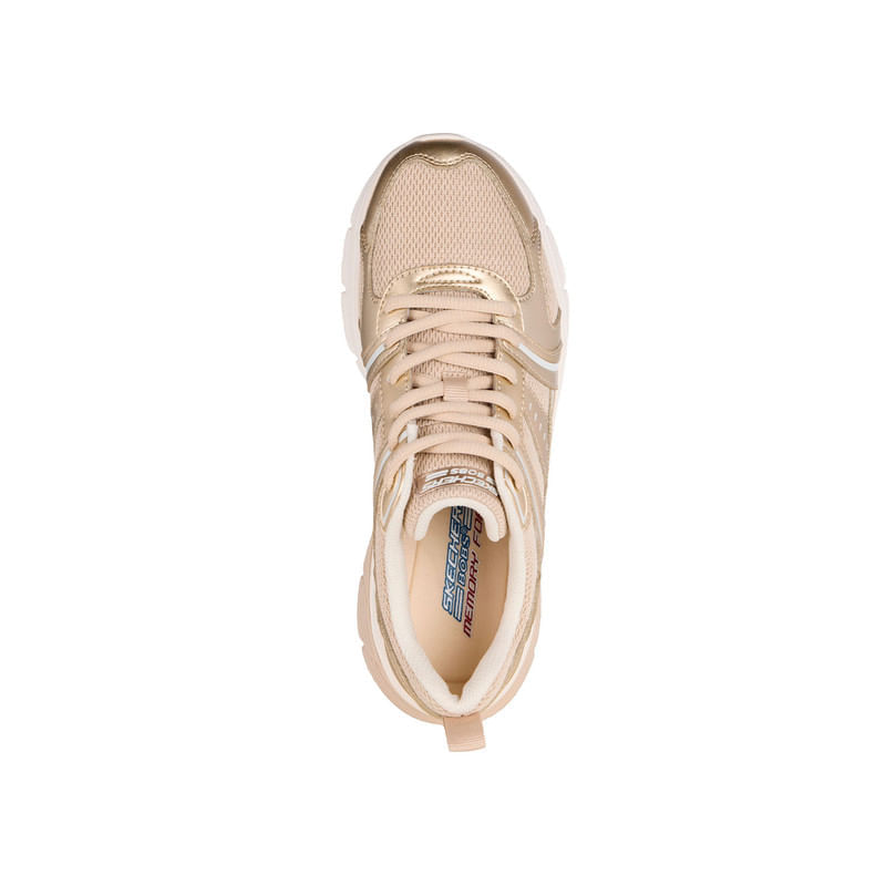 Las Skechers BOBS Sport™ Vamos (ref. SK-117770-GLD) en color Gold son zapatillas deportivas con cordones, ideales para quienes buscan comodidad y estilo en su día a día. Su parte superior de malla con superposiciones sintéticas proporciona transpirabilidad y soporte. La plantilla con amortiguación Skechers Memory Foam™ ofrece confort durante todo el día. La suela flexible con tracción asegura un agarre confiable en diversas superficies. Además, son lavables a máquina, facilitando su mantenimiento. El diseño en color dorado aporta un toque moderno y versátil.