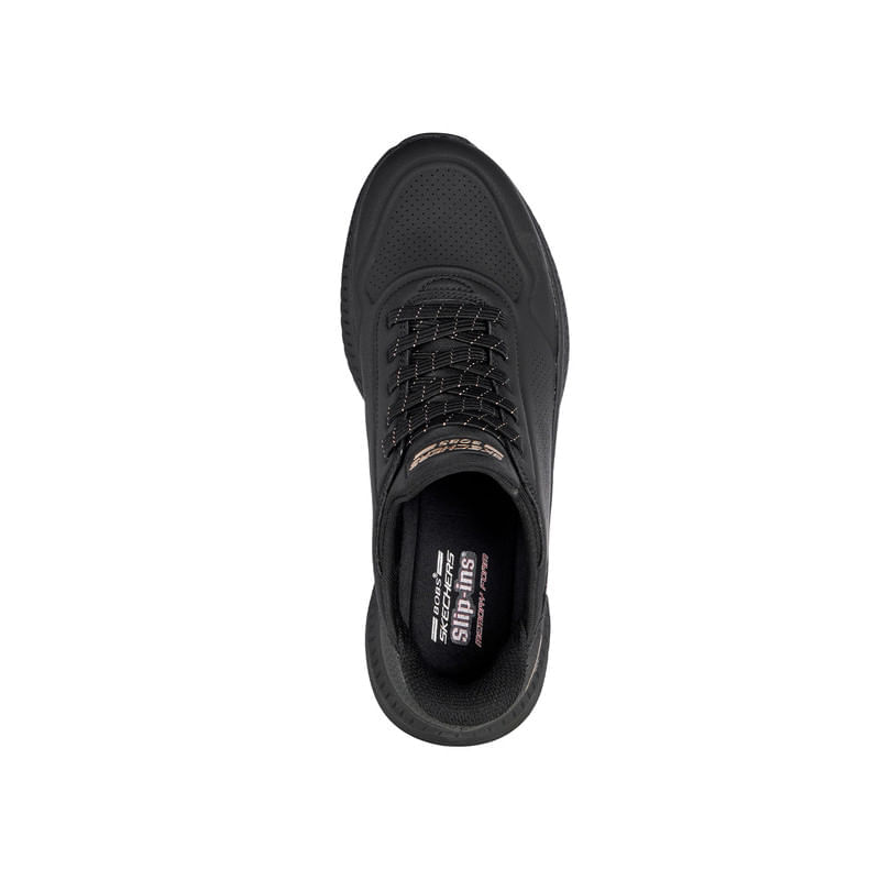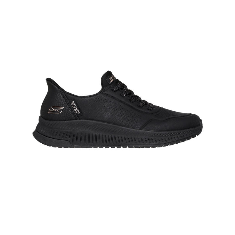 Los Skechers?BOBS?Squad?4 (ref.?117740 BBK) son una opción estilosa y funcional pensada para el uso diario, que combina diseño urbano, comodidad y facilidad de calce. Este modelo destaca por la tecnología “hands free” (también promocionada como “Slip ins®”) que permite ponérselos con rapidez, sin necesidad de atar los cordones convencionalmente. El ajuste cómodo, la amortiguación adaptativa y la suela de tracción flexible hacen de estos tenis una alternativa excelente para caminar, para estar muchas horas de pie o para actividades informales.