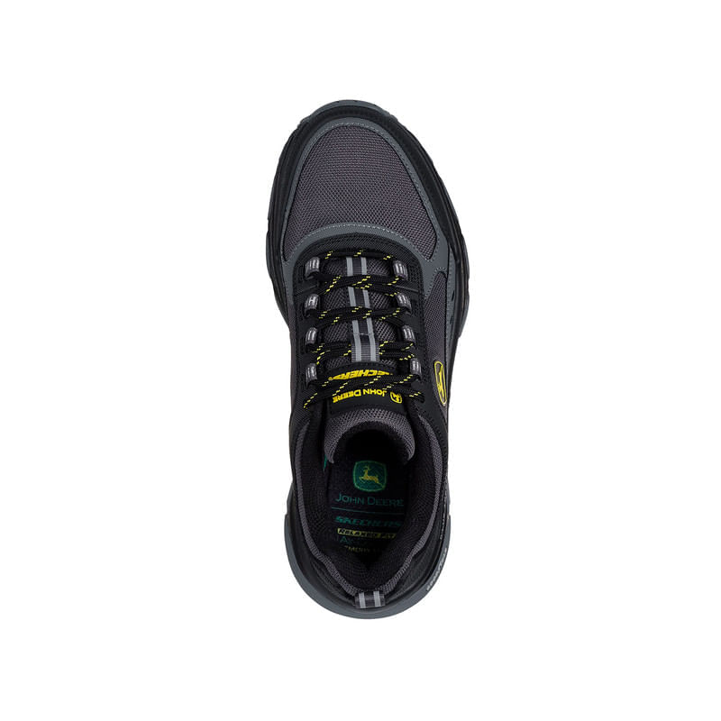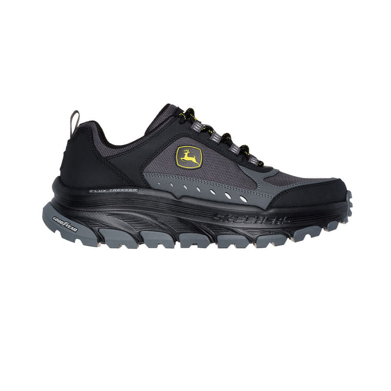 <p>El modelo Skechers x John Deere D’Lux Trekker – Soundguard Trail (Ref. 256014 bkcc) es un calzado tipo outdoor / trail de estilo robusto, resultado de la colaboración entre Skechers y John Deere. Este diseño combina estética camuflada con elementos técnicos que ofrecen comodidad, agarre y resistencia. Está pensado para quienes transitan en ambientes mixtos — desde la ciudad hasta senderos ligeros — y buscan un zapato con carácter rudo pero sin perder confort. Con una silueta agresiva y detalles distintivos de la marca John Deere, este modelo incorpora tecnologías internas de amortiguación y suela de alto rendimiento para uso versátil.<br /> • Estilo: Outdoor / trail / uso urbano con diseño resistente<br /> • Parte superior (upper): tejido con estampado camuflado + superposiciones de cuero sintético para refuerzo<br /> • Plantilla interior: Skechers Air-Cooled Memory Foam® para comodidad ventilada<br /> • Suela exterior: Goma Goodyear® para tracción mejorada, estabilidad y durabilidad<br /> • Ajuste: Relaxed Fit (espacio adicional en la zona delantera / antepié)<br /> • Tracción / agarre: suela antideslizante (anti-slip), útil en condiciones húmedas o secas<br /> • Uso ideal: caminatas, uso diario con estilo “rugged”, exteriores ligeros, terrenos mixtos<br /> • Beneficios clave: combinación de diseño camuflado llamativo, confort con amortiguación interna, buen agarre, robustez para uso mixto<br /> • 60 días de garantía<br /> • Producto 100% Original.<br /> <br /> ATENCIÓN: La imagen de referencia puede presentar alguna diferencia de tono entre la imagen y el producto real, debido al tratamiento de la imagen y la calibración del color de su monitor*.</p>