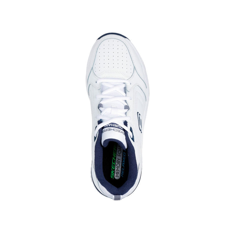 Descubre los Skechers Durham Delck (ref. SK-232730-WNV), unos tenis masculinos que combinan confort relajado con un estilo casual atemporal en blanco con detalles navy (azul marino), perfectos para quienes buscan un calzado cómodo para el uso diario, caminatas y actividades informales. Este modelo pertenece a la familia Skechers Relaxed Fit: Durham, diseñado para ofrecer confort duradero sin renunciar a un diseño sencillo y versátil.