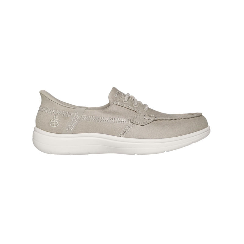 El modelo Slip ins On the GO Flex Radiant (ref. 138377 NAT) es un calzado diseñado por Skechers con un enfoque claro hacia el uso diario urbano / casual / confort. Su filosofía no contempla el rendimiento deportivo de alto nivel, sino la comodidad, practicidad y facilidad para el día a día: caminar, movilizarse en ciudad, transporte, salidas informales o jornadas largas con necesidad de confort. Este modelo pertenece a la familia “Hands Free Slip ins®”: es decir, está pensado para ponerse y quitarse fácilmente, sin atar cordones cada vez — ideal para quienes priorizan practicidad y rapidez al calzar.