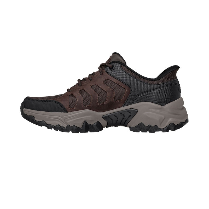 Este diseño de Skechers está pensado para quienes buscan combinar la comodidad de un calzado casual con el rendimiento de un modelo outdoor. Se trata de una zapatilla tipo “slip on” con estilo relajado (Relaxed?Fit®), lo que implica mayor espacio en la zona del antepié, y un sistema Hands?Free Slip ins® que permite ponérsela con facilidad sin perder ajuste seguro gracias a su talón acolchado (Heel?Pillow®). Su parte superior mezcla cuero y malla para aportar estructura, ventilación y durabilidad, mientras que su entresuela y plantilla cuentan con tecnologías de amortiguación avanzadas como Air Cooled?Memory?Foam® y Memory?Arch™?cushioning, pensadas para uso prolongado, caminatas y actividades cotidianas. La suela emplea un compuesto antideslizante de tipo Goodyear, lo que la hace adecuada incluso en condiciones húmedas o superficies resbaladizas.