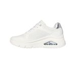 Los Skechers UNO Icon Mujer (ref. 177767-WHT) son la combinación perfecta entre estilo urbano y comodidad. Con un diseño moderno y elegante, estos tenis están pensados para quienes buscan destacar sin sacrificar confort. Su parte superior de cuero perforado con detalles metálicos añade un toque de sofisticación, mientras que la plantilla Air-Cooled Memory Foam® y la entresuela con cámara de aire visible Skech-Air® garantizan una caminata cómoda y amortiguada. Ideales para el día a día, ofrecen versatilidad y estilo en cada paso.
