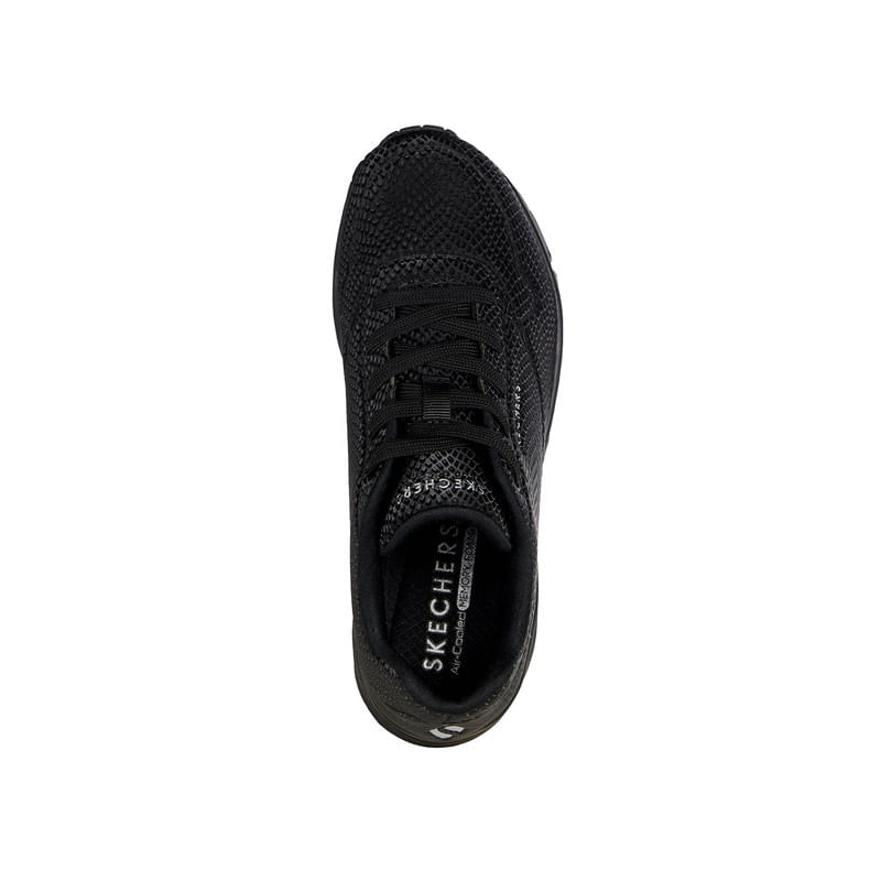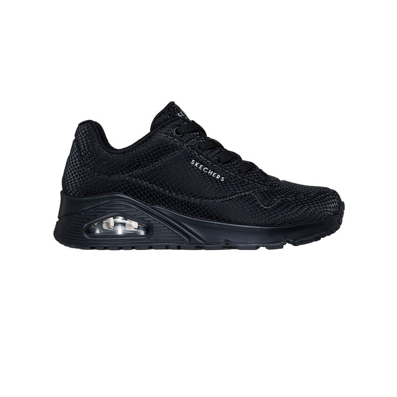 Los Skechers UNO - Shiny Scale (ref. 177861-BBK) son el equilibrio perfecto entre estilo urbano y comodidad. Con un diseño llamativo y moderno, estos tenis están pensados para quienes buscan destacar sin sacrificar confort. Su parte superior de durabuck con estampado de escamas reflectantes añade un toque de originalidad, mientras que la plantilla Air-Cooled Memory Foam® y la entresuela con cámara de aire visible Skech-Air® garantizan una caminata cómoda y amortiguada. Ideales para el día a día, ofrecen versatilidad y estilo en cada paso.