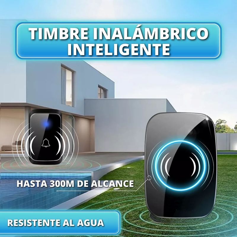 Con una distancia de cobertura de 300 m, instala tu timbre donde más te convenga. Tanto la unidad receptora como el pulsador funcionarán a la perfección.