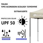 Disfruta del aire libre con la máxima comodidad y protección gracias a nuestro Toldo 2x2 Tipo Acordeón Ecology Sunshine. Diseñado para ofrecer una sombra refrescante y un refugio eficaz contra los elementos, este toldo es la solución perfecta para tus eventos, mercados, picnics, días de playa o cualquier actividad exterior. Su vibrante color azul no solo añade un toque de estilo, sino que también crea un ambiente acogedor y relajante.