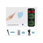 Con su radio FM integrada, múltiples entradas (USB, MicroSD, Aux), y conexión Bluetooth inalámbrica, tendrás todo lo que necesitas en un solo equipo. Además, su batería recargable te ofrece autonomía suficiente para tus reuniones y la posibilidad de recargarlo fácilmente en cualquier enchufe.