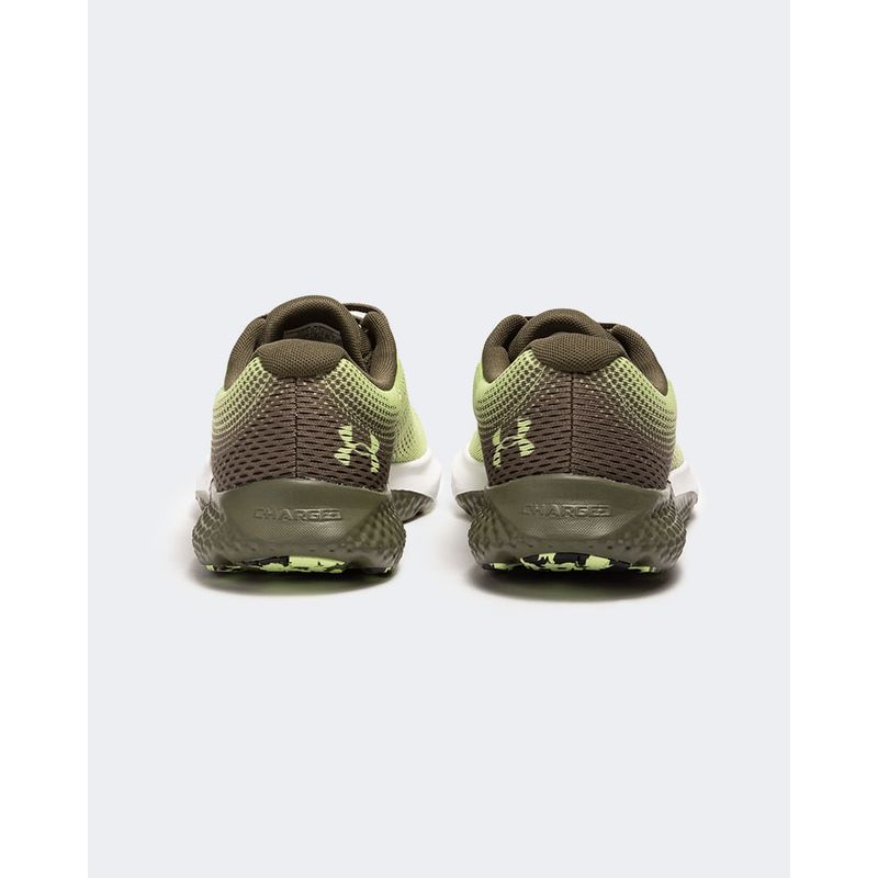 Incorporamos una malla ligera y transpirable con nuestra entresuela Charged Cushioning para brindar una increíble capacidad de respuesta, máxima absorción de impactos y una sensación de amortiguación que te mantiene en carrera.