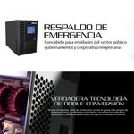 La topología de doble conversión garantiza que los equipos conectados queden debidamente aislados de cualquier irregularidad eléctrica proveniente de la red de alterna.