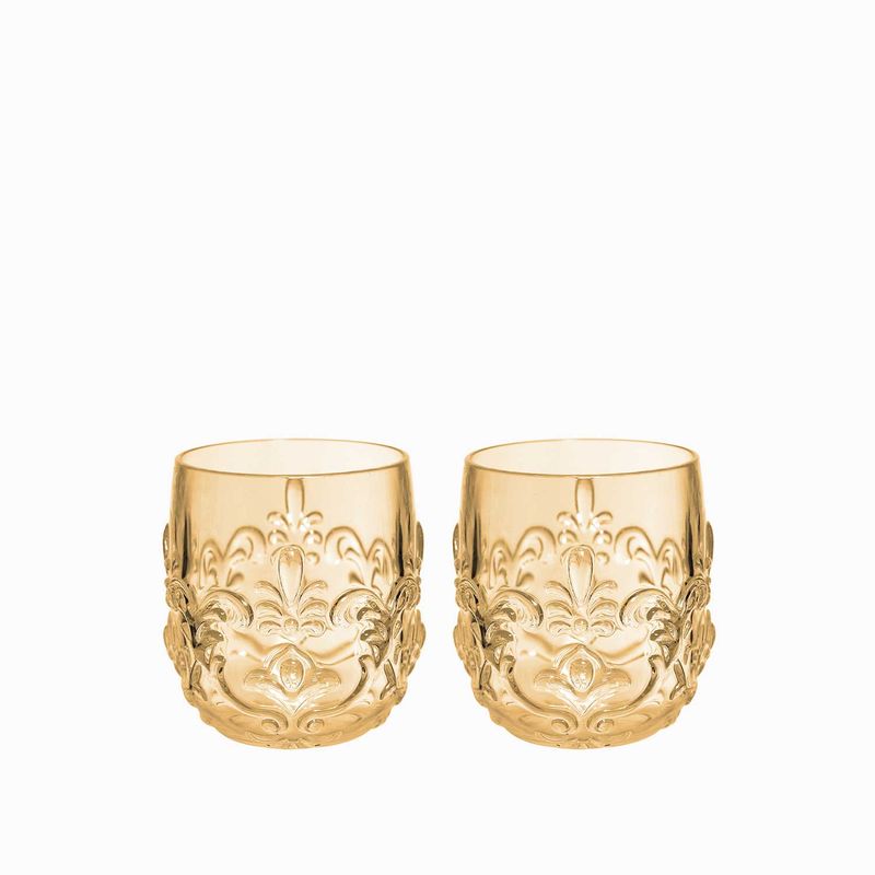 Juego de vasos en acrílico de estilo vintage con capacidad para 400 ml, vienen dos (2) piezas, especiales para mesas o celebraciones al aire libre, festivas y coloridas. Podrás disfrutar tranquilamente de la celebración gracias a su material. Pueden usarse para servir cocteles, spirits, smoothies, refrescos y aguas saborizadas.