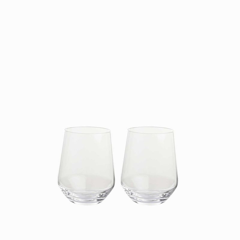Juego de vasos en vidrio de la colección Lustro, este set viene con dos vasos transparentes con capacidad para 530ml, ideal para bebidas frias o licores.