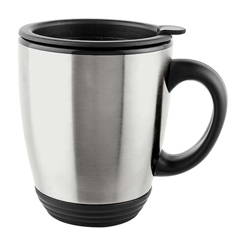 - Doble pared. Pared interna de plástico y externa de acero inoxidable. - - Tapa de plástico con ranura.
