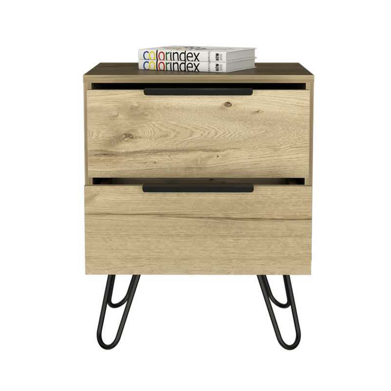 Velador con dos cajones, espacio para colocar objetos decorativos, de facil armado con medidas de: ANCHO 45 ALTO 57 PROFUNDO 34,8