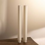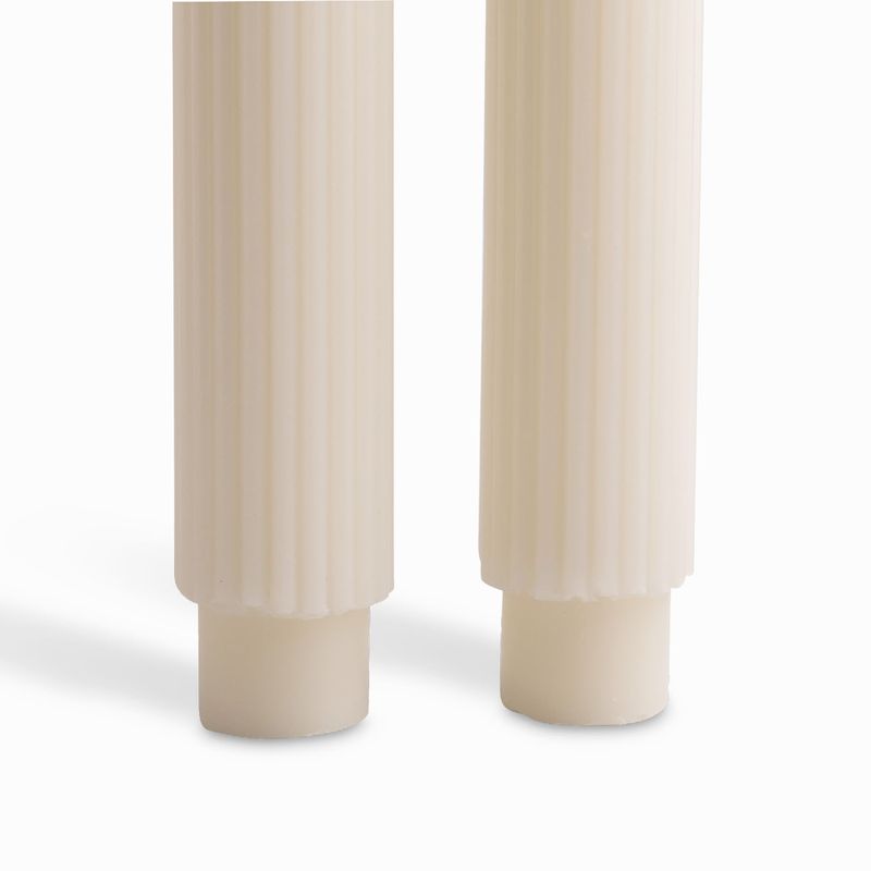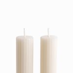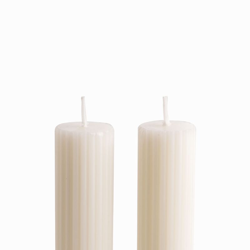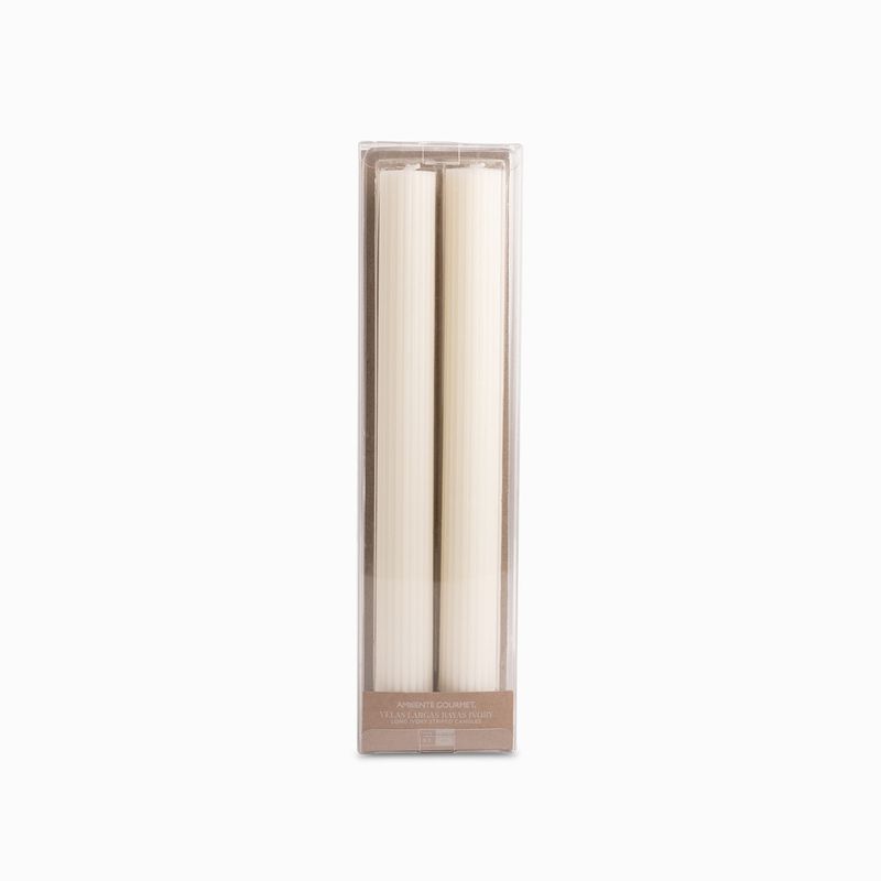 Añade altura, elegancia y luz cálida a tu mesa con el set de 2 velas largas rayas ivory. Estas piezas esculturales de 27 cm no son solo iluminación, sino una declaración de estilo con un patrón de rayas sutil y moderno. Su mezcla de parafina y cera de soja garantiza una experiencia de quema superior, limpia y sin goteo excesivo.