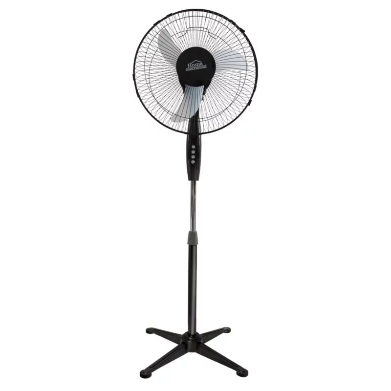 Ventilador 16? – 3 en 1 – Negro – Home Elements. Cuenta con 3 funciones: pedestal, pared y mesa. 3 velocidades para controlar el flujo de aire. Rejilla metálica de seguridad para mayor resistencia. Aspa plástica con diseño aerodinámico de 3 puntas para generar gran flujo de aire. Oscilación horizontal de 90º para mayor cobertura. Inclinación vertical de 30ºpara una focalización vertical. Motor eficiente para un excelente desempeño. Base en cruz que brinda mayor estabilidad. Altura ajustable hasta 130 cm. Fácil de mover y transportar. Ideal para espacios intermedios. Motor de 45W.